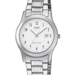 Casio LTP-1141PA-7BEG - Women's classic silver analogue watch with white dial. Classic analogue watch from the Casio Collection featuring a simple and elegant design with a round silver-tone plated case. The clean white dial is detailed with legible hour markers and hands for excellent readability, accompanied by a practical date window at the 3 o'clock position. Fitted with a durable stainless steel bracelet with a folding clasp and protected by scratch-resistant mineral glass. Water resistant to minor splashes and rain, making it a reliable choice for everyday wear. Each watch is delivered in its original Casio packaging, ensuring authenticity and quality.