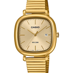Casio LTP-B166G-9AV - Women's elegant gold square analogue watch with date. Sophisticated analogue watch from the Casio Collection featuring a slim rectangular stainless steel case with a luxurious gold ion-plated finish. The matching gold-tone dial creates a seamless monochromatic look, accented by simple hour markers and a practical date display at the 6 o'clock position. Fitted with a gold ion-plated stainless steel bracelet featuring an adjustable clasp for a comfortable, customized fit. Protected by durable mineral glass and water resistant to 5 ATM (50 m), making it suitable for daily wear and showering. Each watch is delivered in its original Casio packaging, ensuring authenticity and quality.