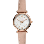 Fossil Carlie Mini ES4699 – Elegant Rose-Gold Case with Mother-of-Pearl Dial and Blush Leather Strap.