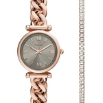 The Fossil Carlie ES5378SET is an elegant and feminine accessory, combining the timeless charm of a watch with the sophisticated sparkle of a matching bracelet. This set is designed to elevate any outfit, whether casual or formal.