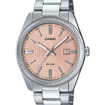 Casio MTP-1302PE-4AVEF – Classic Silver Case with Pink Dial and Leather Strap.