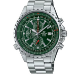 Casio Edifice EF-527D-3AVUEF – Rugged Silver Case with Green Chronograph Dial and Stainless Steel Bracelet.
