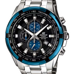 The bold bezel with blue ion plating and contrasting black dial adds a dynamic flair while maintaining a classic Edifice style.
