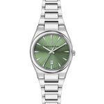Lucien Rochat women's steel watch, analogue with quartz movement.; Time and date function, steel case, green dial with three spheres, fitted with resistant mineral glass with sapphire treatment.; The steel strap is made up of a practical deployant clasp with buttons.; Water resistance up to 3 ATM.; Lucien Rochat, Avenue collection: a touch of refined femininity.