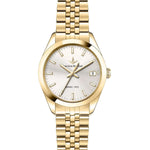 Lucien Rochat Women's watch, MADAME Collection, ref.; R0453114505, Quartz movement MVT.; VJ32B, time and date, made of stainless steel, yellow gold pvd.; This wrist watch is equipped with a stainless steel strap, with fold-over clasp.; The round case measures 32mm, surrounds a silver dial and hosts a mineral crystal, sapphire treatment.; Water resistance up to 3 ATM.; This watch is contained in its Lucien Rochat official presentation box, with 2-years warranty.; Lucien Rochat Madame Collection: the perfect combination of classic inspiration and modern elegance, a collection that is always impeccable and suitable for any occasion.