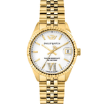 Philip Watch Ladies watch, R8253597654, CARIBE Collection, in steel, with selected natural diamonds CT 0;035 GH I3, quartz movement, time and date function; The watch features a gold-colored steel strap, with a fold-over clasp with safety catch; The watch case measures 31;00 mm, surrounds a round white dial with diamond details and is mounted on a resistant sapphire crystal; Water resistance up to 10 ATM