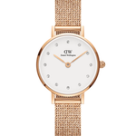 Minimalist and refined, this rose gold case with a white strap creates a fresh and graceful look.