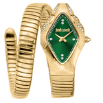Just Cavalli Ferocious Signature Snake JC1L306M0045 – yellow‑gold case with analog display, paired with a yellow‑gold stainless steel bracelet strap.