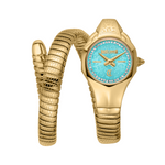 Just Cavalli Signature Snake Fiore JC1L354M0035 – yellow-gold case with analogue display, paired with a gold stainless-steel strap.