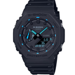 Casio G-SHOCK GA-2100-1A2ER – Sleek Black Case with Blue Accents and Analog-Digital Display.