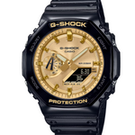 Casio G-SHOCK GA-2100GB-1AER – Elegant Black Case with Gold Accents and Resin Band.