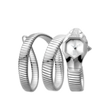 Just Cavalli Signature Snake Glam JC1L022M0055 – silver case with analogue display, paired with a silver stainless-steel wrap-around strap.