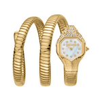 Just Cavalli Signature Snake Glam JC1L193M0025 – gold-tone stainless-steel case with analogue display, paired with a gold stainless-steel bracelet.