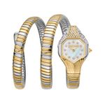 Just Cavalli Signature Snake Glam JC1L193M0055 –two‑tone (silver‑and‑gold) stainless‑steel case with analogue display, paired with a matching two‑tone stainless‑steel bracelet.