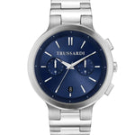 Trussardi Men's watch, R2453164004, LOUD Collection, in steel, quartz movement, multifunction function; The watch features a metal strap, with a diver's buckle with push buttons; The watch case measures 43;00 mm, surrounds a blue dial and features a resistant mineral glass; Water resistance up to 5 ATM; The watch is contained in its original packaging, with a 2-year guarantee certificate