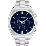 Trussardi Men's watch, R2453159010, METROPOLITAN collection, in steel, quartz movement, multifunction function; The watch is characterized by a steel strap, with a deployment clasp; The watch case measures 44mm, surrounds a blue dial and features a durable mineral glass; Water resistance up to 5 ATM; The watch is shipped in its original Trussardi packaging, with a 2-year warranty
