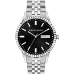 Trussardi Men's watch, R2453141012, T-BENT collection, steel case, quartz movement, time function, date; The watch is characterized by a steel strap, with a concealed clasp; The watch case measures 39;00 mm, surrounds a black dial and mounts a resistant sapphire crystal; Water resistance up to 5 ATM; The watch is contained in its original packaging, with a 2-year warranty certificate