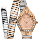 Designed in radiant rose gold with a duo-color steel strap, this standout piece features a stainless steel asymmetrical case and a sleek mineral glass face for a refined finish. The champagne-pink tones and signature snake detailing deliver a distinct Just Cavalli flair, while the reliable quartz movement and 3 ATM water resistance ensure practicality and everyday wearability. A perfect fusion of fashion and function for the modern woman.