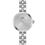 This watch showcases a 22mm silver-tone stainless steel case paired with a coordinating three-link bracelet, offering a sleek and modern look.; The white dial features delicate crystal hour markers, enhancing its refined aesthetic.; Driven by a precise quartz movement, it provides dependable timekeeping.; With a water resistance of up to 3 ATM, it is designed for daily wear, merging style with functionality.
