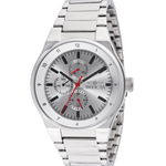 Men’s quartz watch featuring a round stainless steel case and a stainless steel bracelet, with a refined silver-brass dial design.