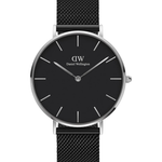 A bold yet elegant statement piece; This Daniel Wellington watch features a contemporary black dial, a polished stainless steel case, and a refined mesh strap for a unisex design that stands out